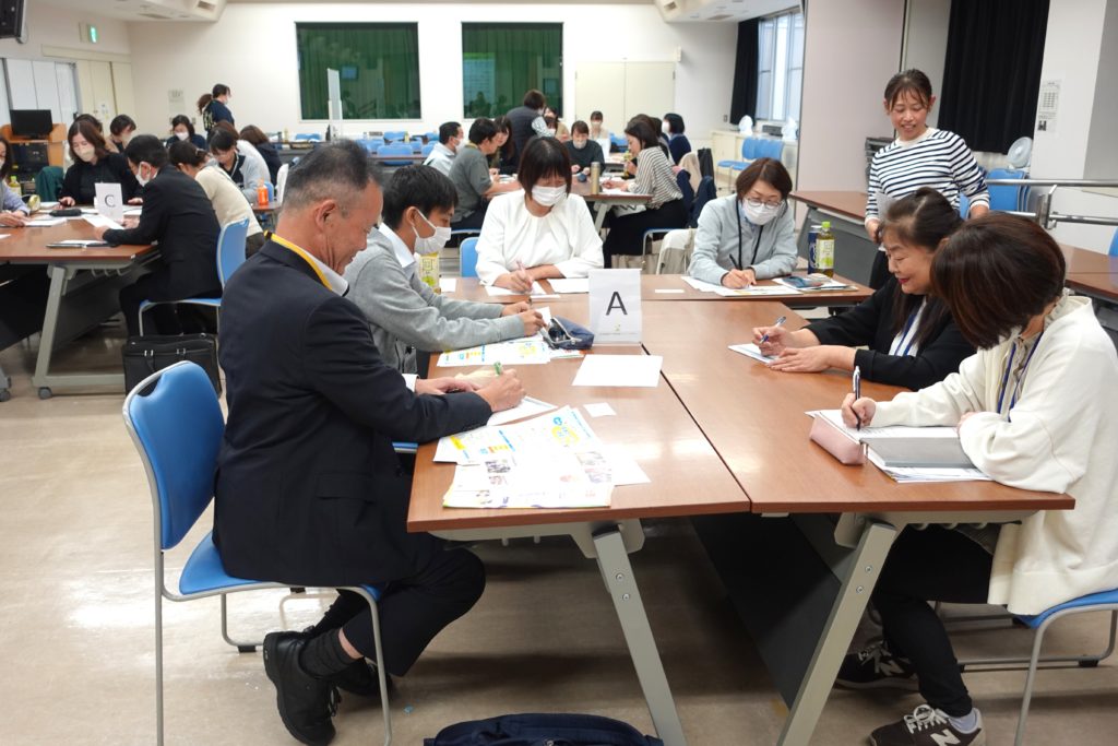 前半の取り組み報告では、香川県健康福祉部障害福祉課 岡課長補佐より、「香川県医療的ケア児一時預かり制度」について、また香川県健康福祉部子ども政策推進局 籔根子ども政策課課長補佐より「香川県における子育て支援拠点について」と題した発表がありました。実際の子育て支援について、認定NPO法人わははネットの太田理事と認定NPO法人子育てネットくすくすの草薙理事長より、それぞれにおける子育て支援の取り組みが発表されました。その後、各市町に分かれて、「医療的ケア児養育者の孤立・孤独を防ぐために」をテーマにグループにてディスカッションを行いました。